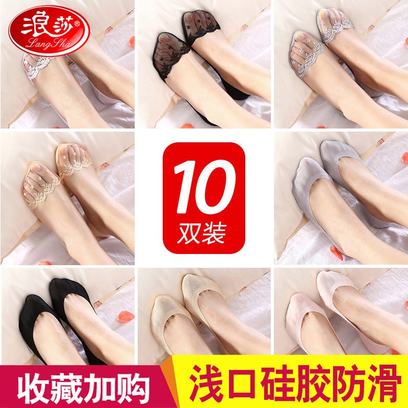 高跟鞋 袜子薄款 袜子 冰丝隐形袜棉制底防滑不掉跟浅口鞋 船袜女夏季