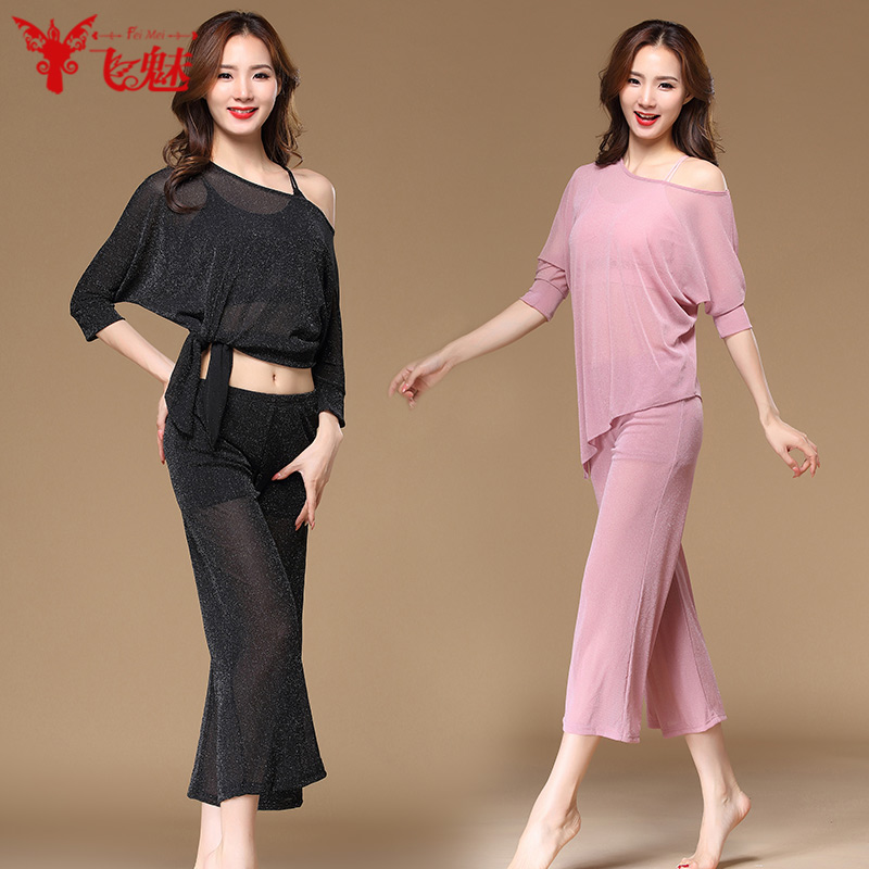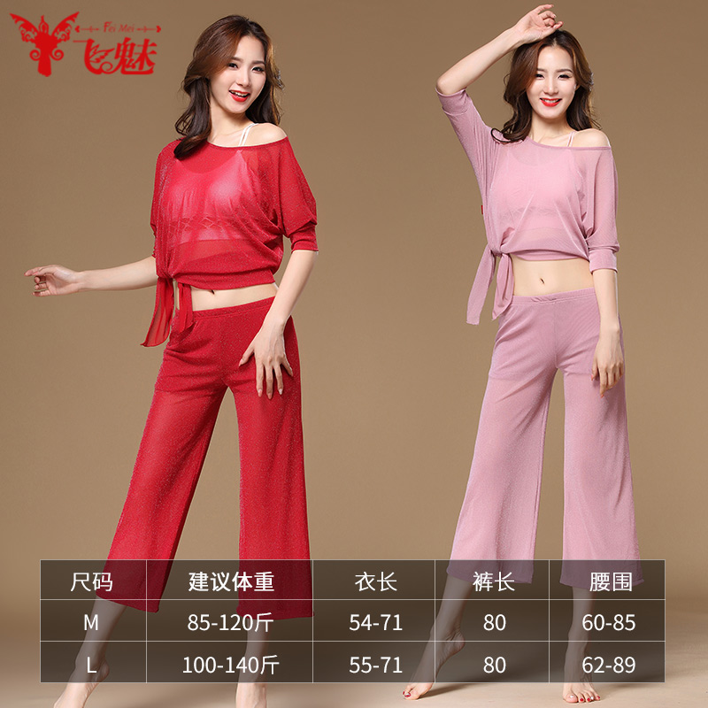 子 飞魅 女成人东方舞衣舞蹈九分裤 短袖 遮肚 肚皮舞练习春夏上衣