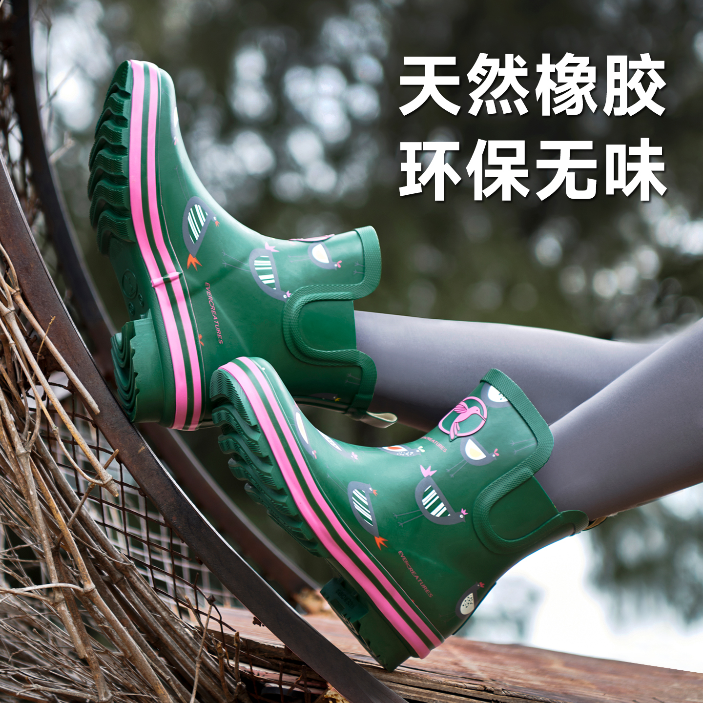 evercreatures英国雨鞋 水靴卡通小鸡印花短筒 女雨靴防滑防雨水鞋