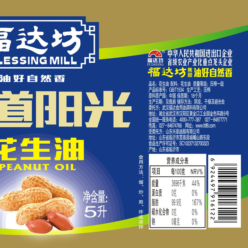 福达坊一级压榨特香浓香花生油5L工艺