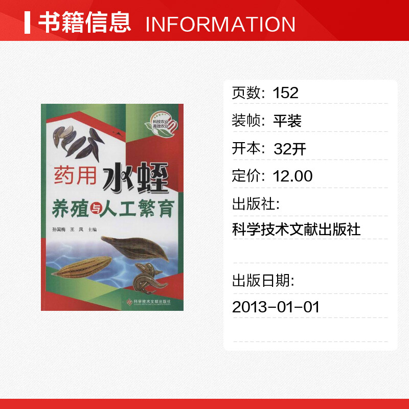 养殖专业科技 社 王凤 科学技术文献出版 图书籍 新华书店正版 畜牧 著 编 孙国梅 药用水蛭养殖与人工繁育