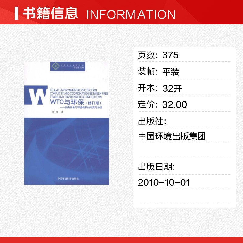 陈泉生 著作 中国环境出版 冲突与协调 集团 图书籍 黄辉 新华书店正版 WTO与环保.自由贸易与环境保护 环境科学专业科技