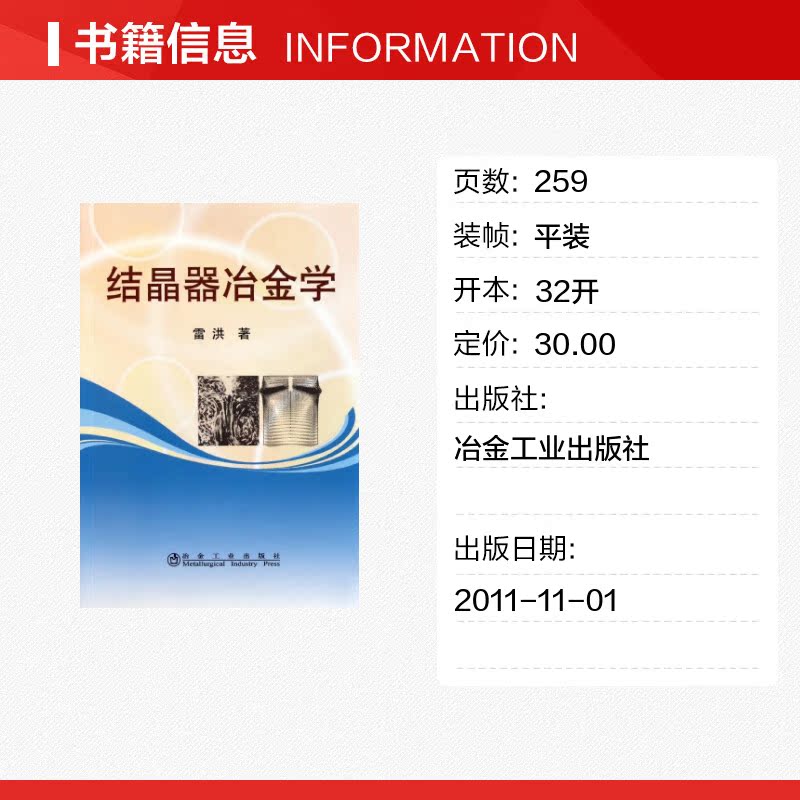 冶金工业专业科技 著 新华书店正版 图书籍 社 结晶器冶金学 冶金工业出版 雷洪