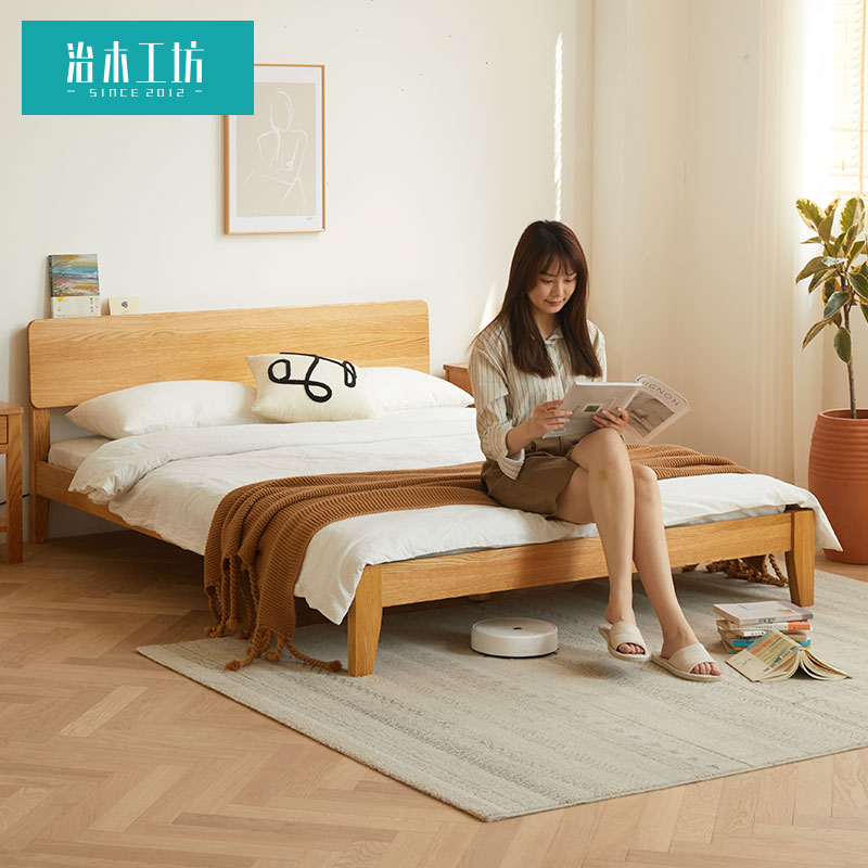 治木工坊北欧床全实木床1.8米1.5米橡木双人床简约现代卧室床