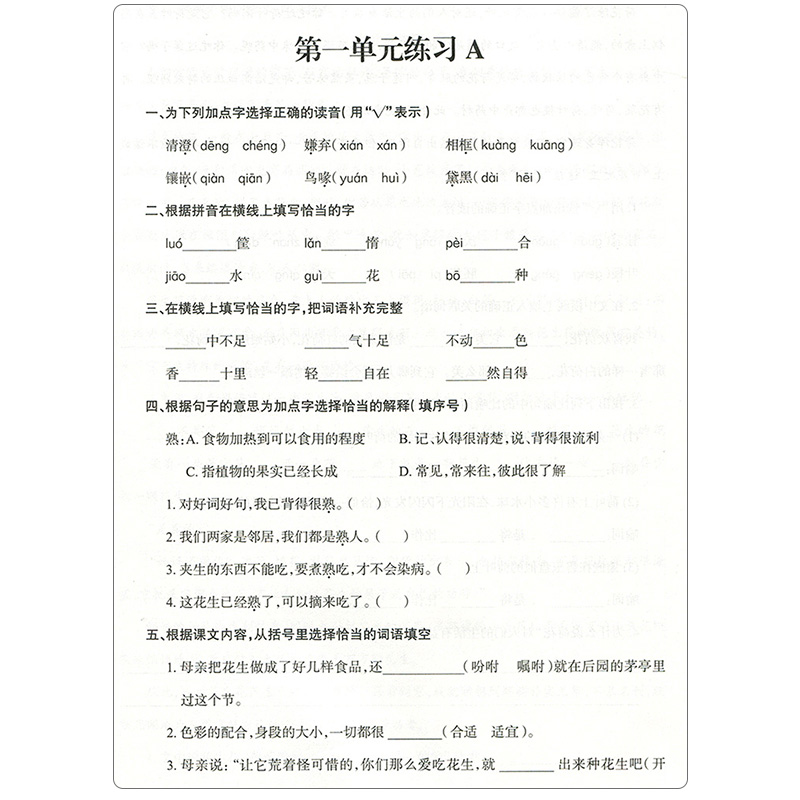 含答案练习题语文测试卷辅导书 期末考试同步练习卷子天津专版 2020秋小老虎图书小学语文自评测试卷五5年级上语文统编版 教材单元