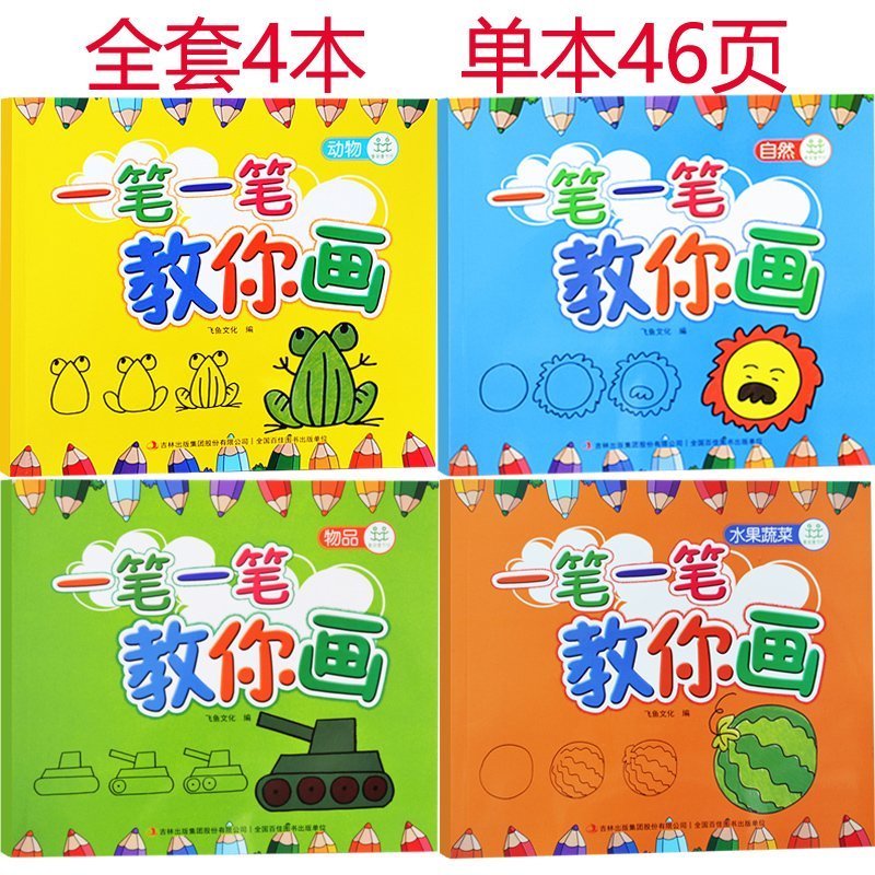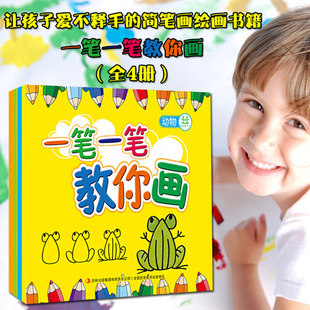 幼儿园教师小学生少儿创意幼儿绘画书籍 一二三笔画早教美术简单教程 一笔一笔教你画全4册儿童简笔画3 6岁学画画书入门教材书