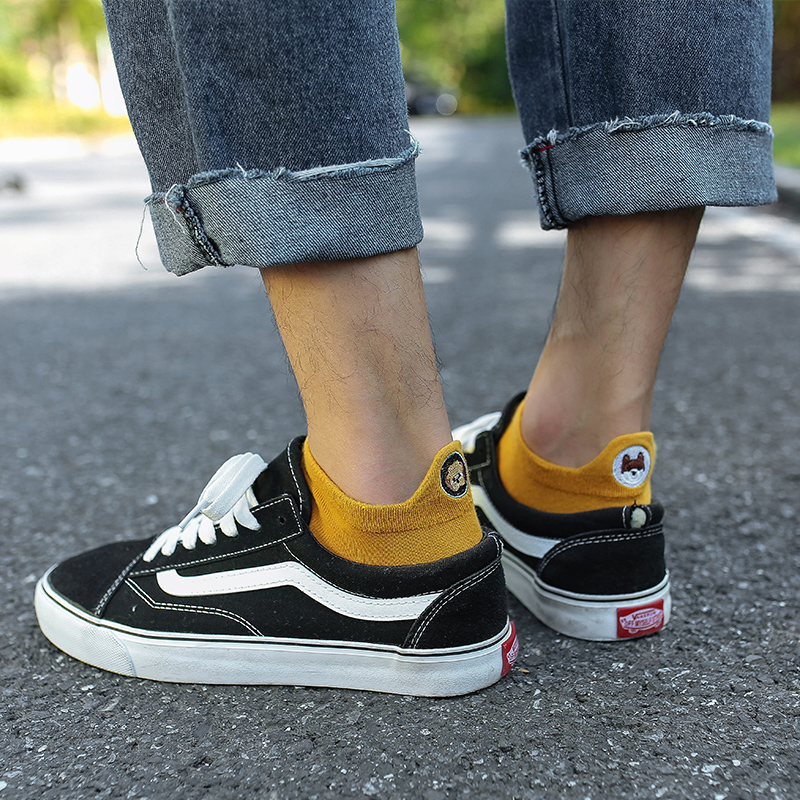 袜子男青少年可爱短袜韩版 ins潮低邦防臭吸汗透气刺绣春夏浅口袜z