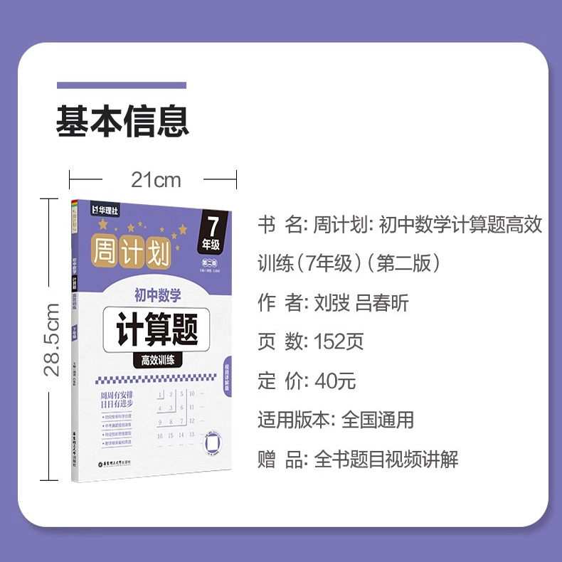 七年级含答案详解 7年级 初中数学真题专项训练题型解析 提升数学解题能力 社 周计划 华东理工大学出版 初中数学计算题高效训练