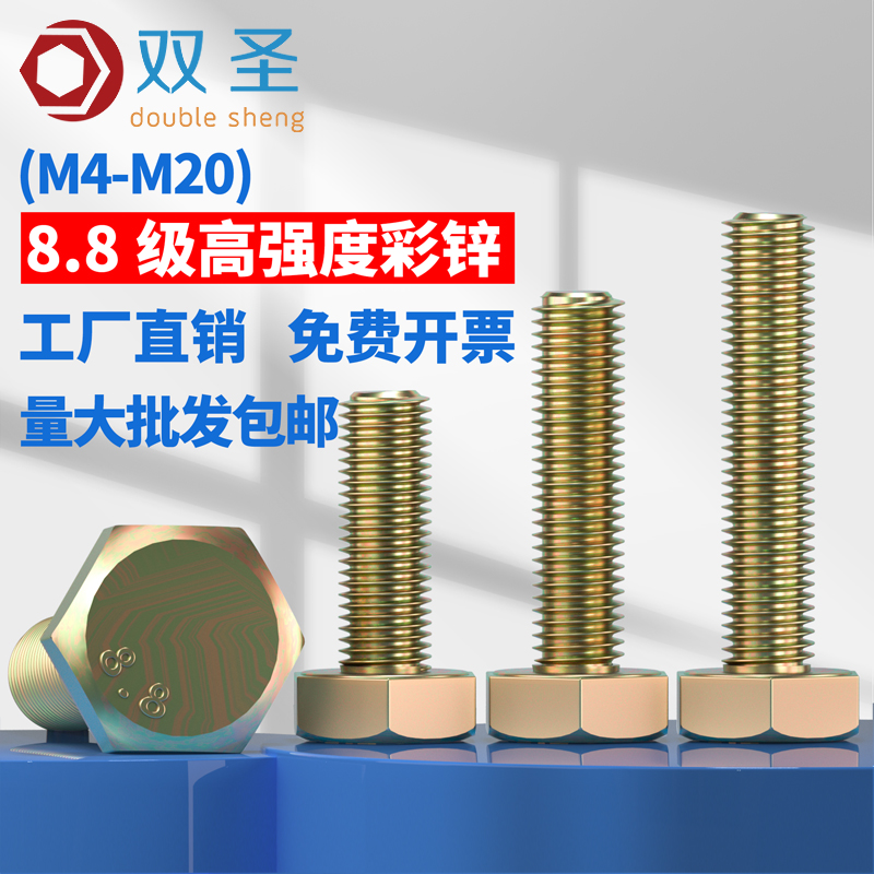M4M6M8M1012 M20镀彩锌外六角螺栓8.8级黄锌外六角螺丝高强度彩锌