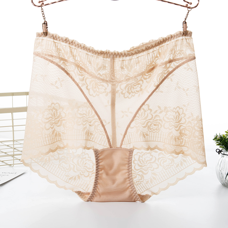 女性感火辣诱惑超薄蕾丝网纱透明冰丝无痕平角裤 3条高腰大码 内裤