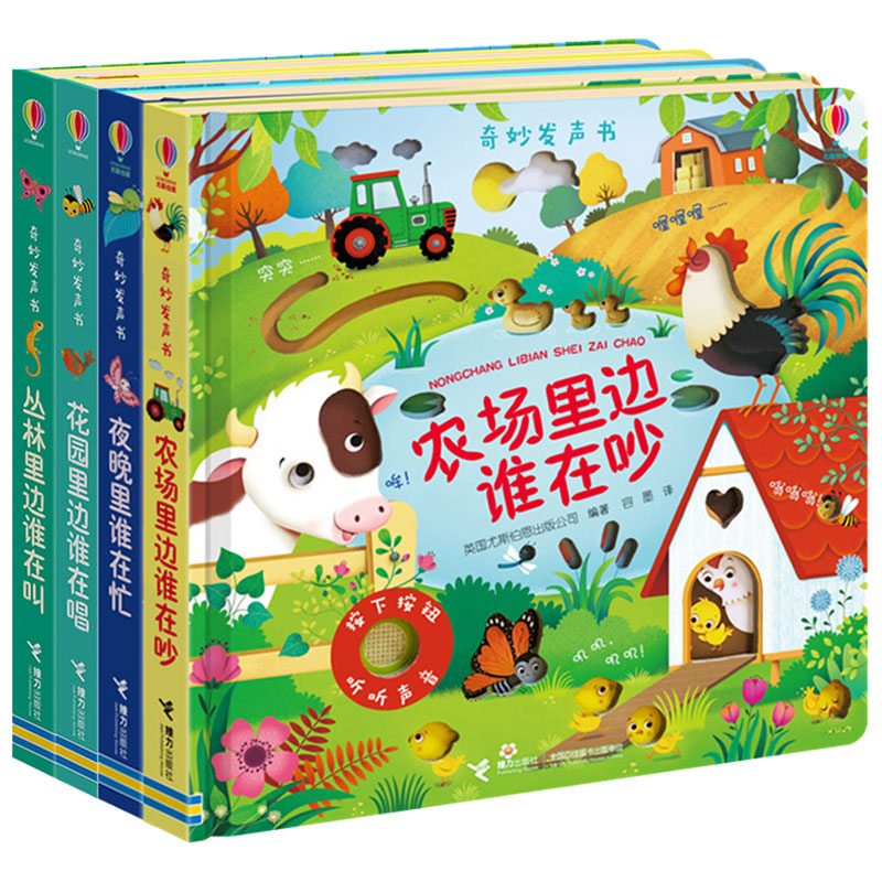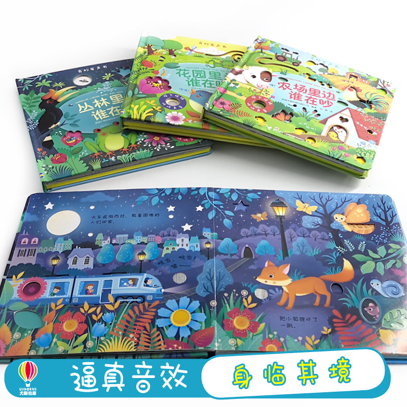 农场里边谁在吵 儿童宝宝点读认知有声读物绘本 夜晚里谁在忙 花园谁在唱 幼儿早教听什么声音 丛林谁在叫 usborne奇妙发声书全4册