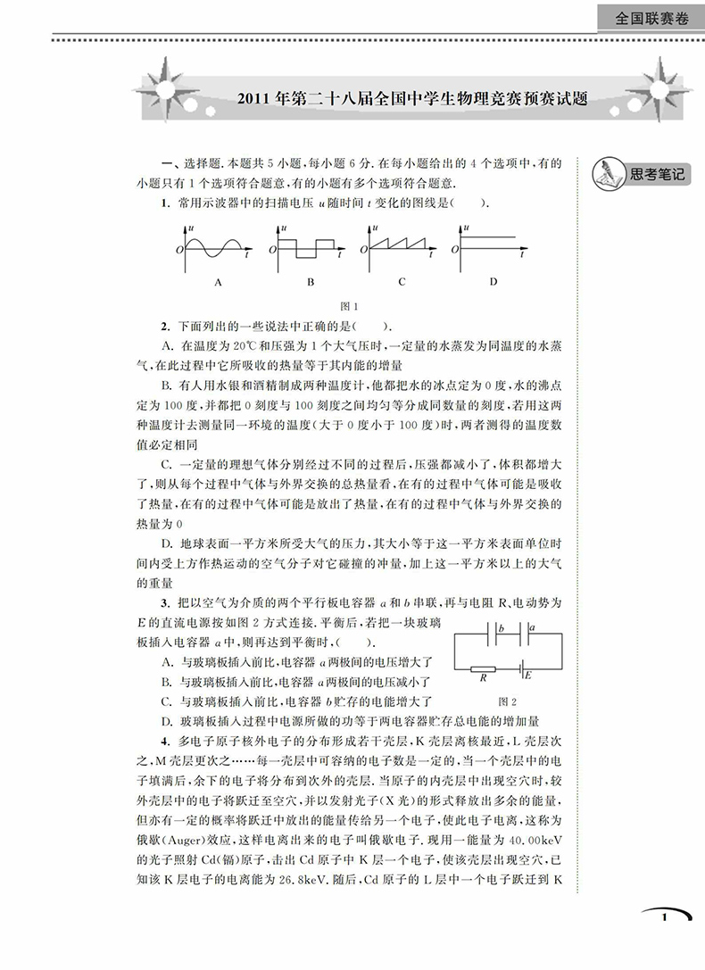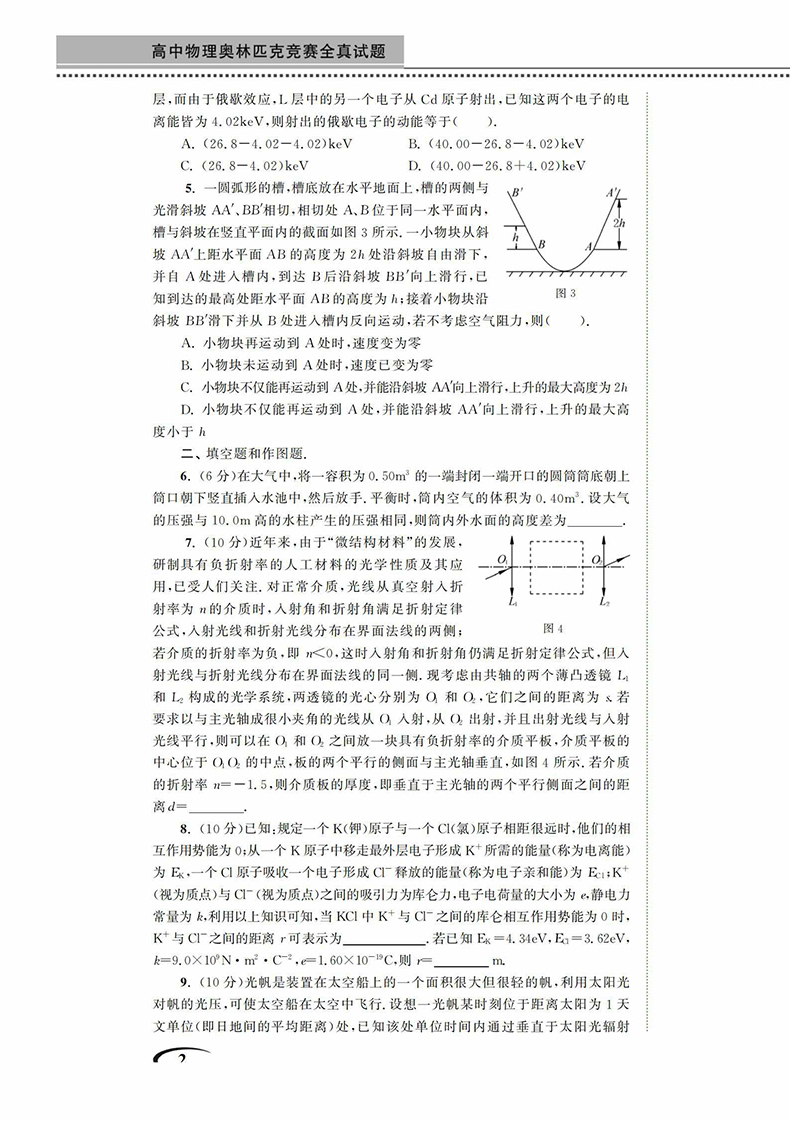 2025详解版 社 高中物理奥林匹克竞赛全真试题全国联赛卷全国中学生物理竞赛复赛预赛试题高一二三物理奥赛历年真题答案湖北科技出版