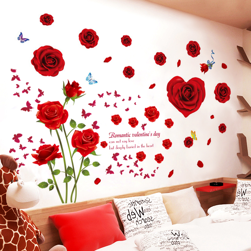 创意贴纸温馨卧室床头墙面装 饰墙壁纸自粘房间背景墙上贴花墙贴画