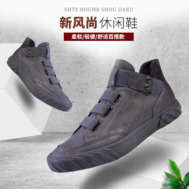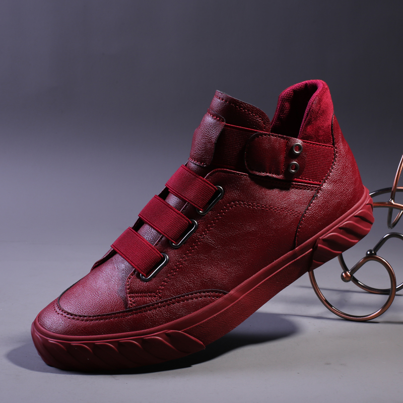 运动鞋 高帮休闲鞋 秋冬新款 子学生厚底男鞋 皮面鞋 征服鸿星尔克板鞋