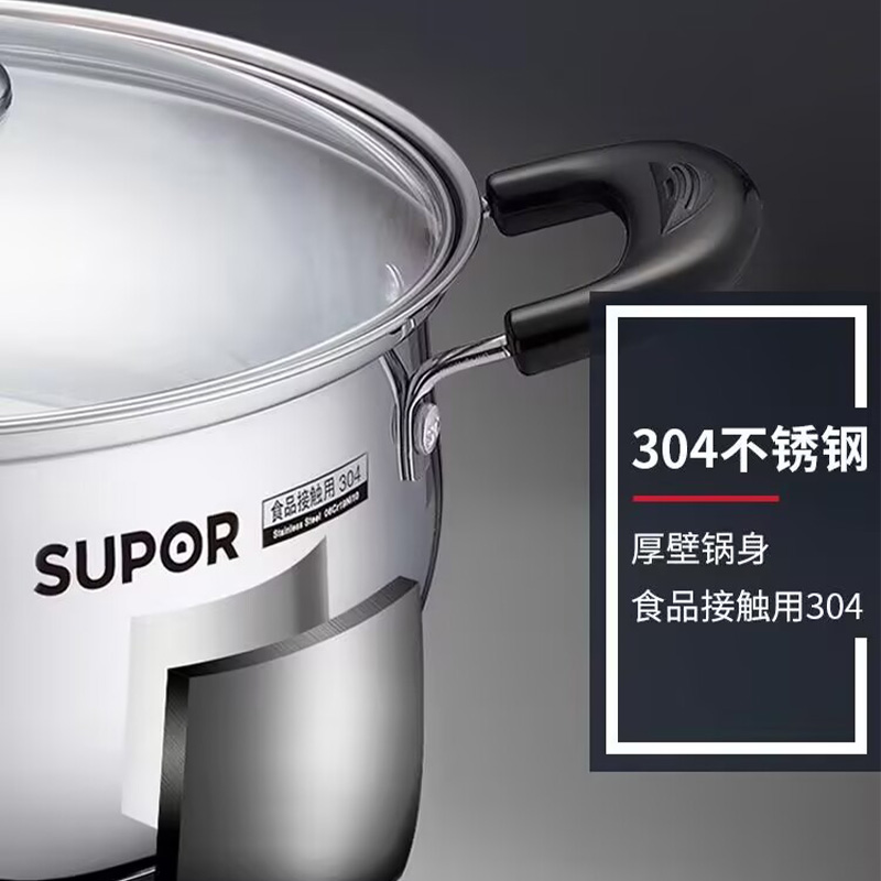 苏泊尔不锈钢汤锅304加厚家用小汤锅食品级煮粥奶火锅燃气电磁炉
