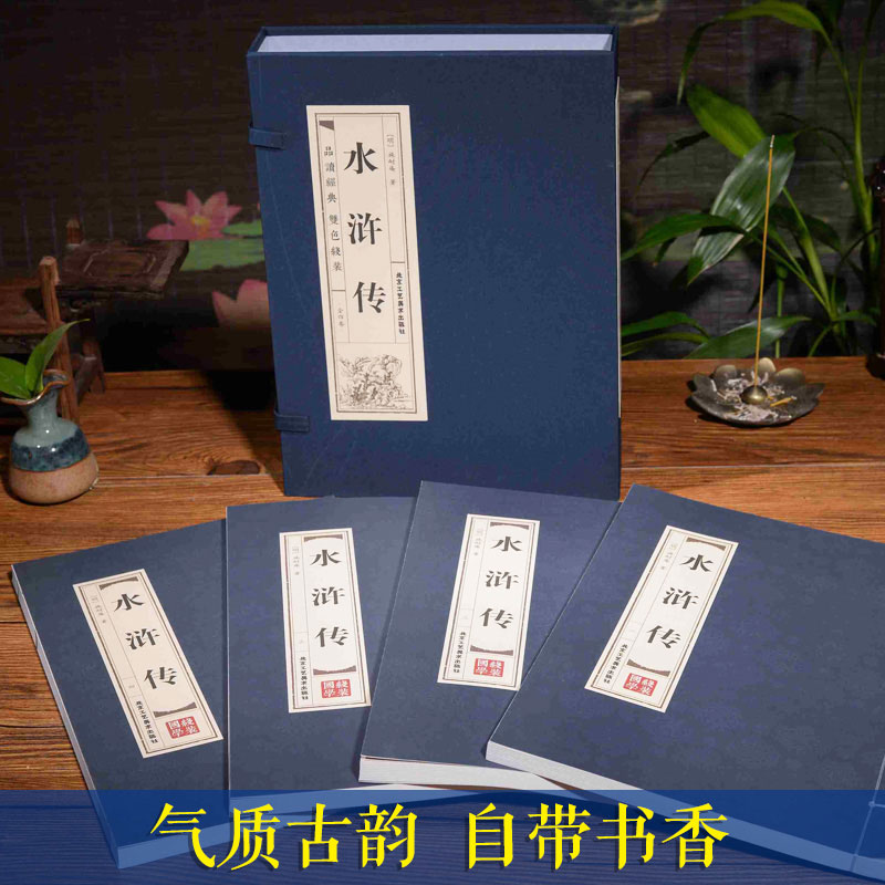 文言文完整版 水浒传原著正版 施耐庵小学生初中生八年级青少年原版 全套4册无删减120回初高中学生版 注解四大名著世界名著书 仿古线装
