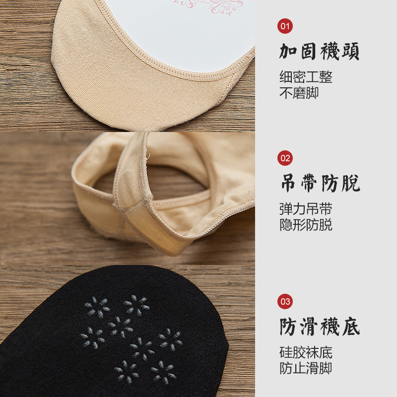 高跟鞋 袜子薄款 袜子 冰丝隐形袜棉制底防滑不掉跟浅口鞋 船袜女夏季