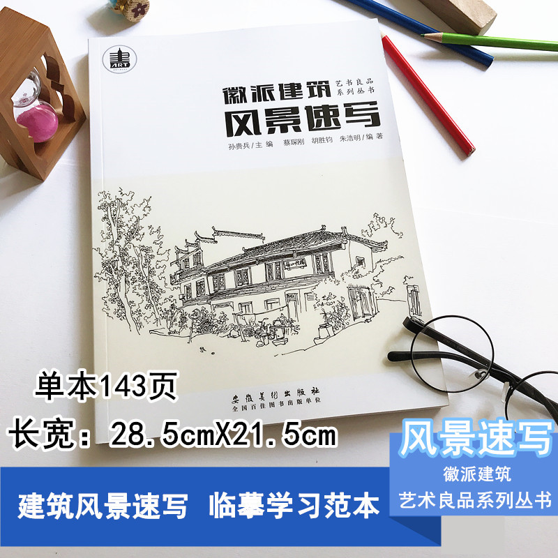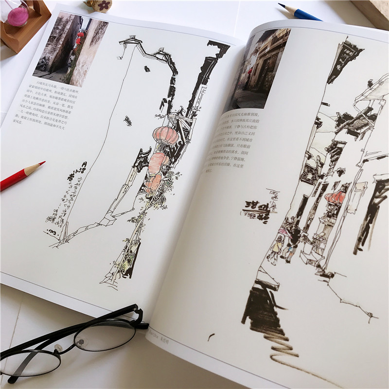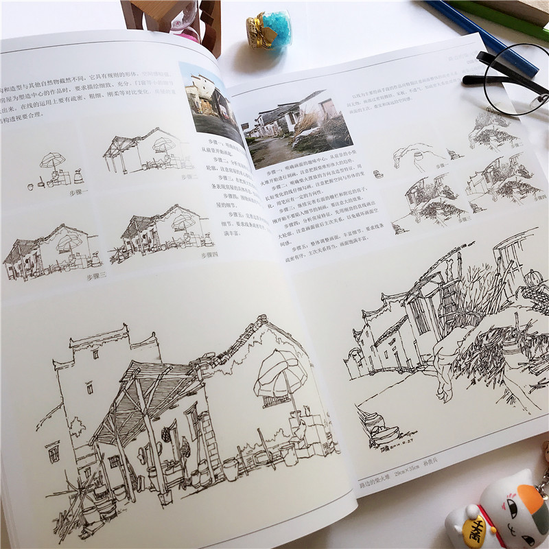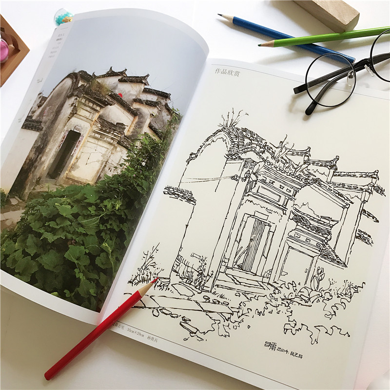 徽派建筑风景速写 安徽美术 钢笔画技法线描树山石画法从入门到精通范画临摹学生风景写生写实成人自学风景速写素描基础教程书