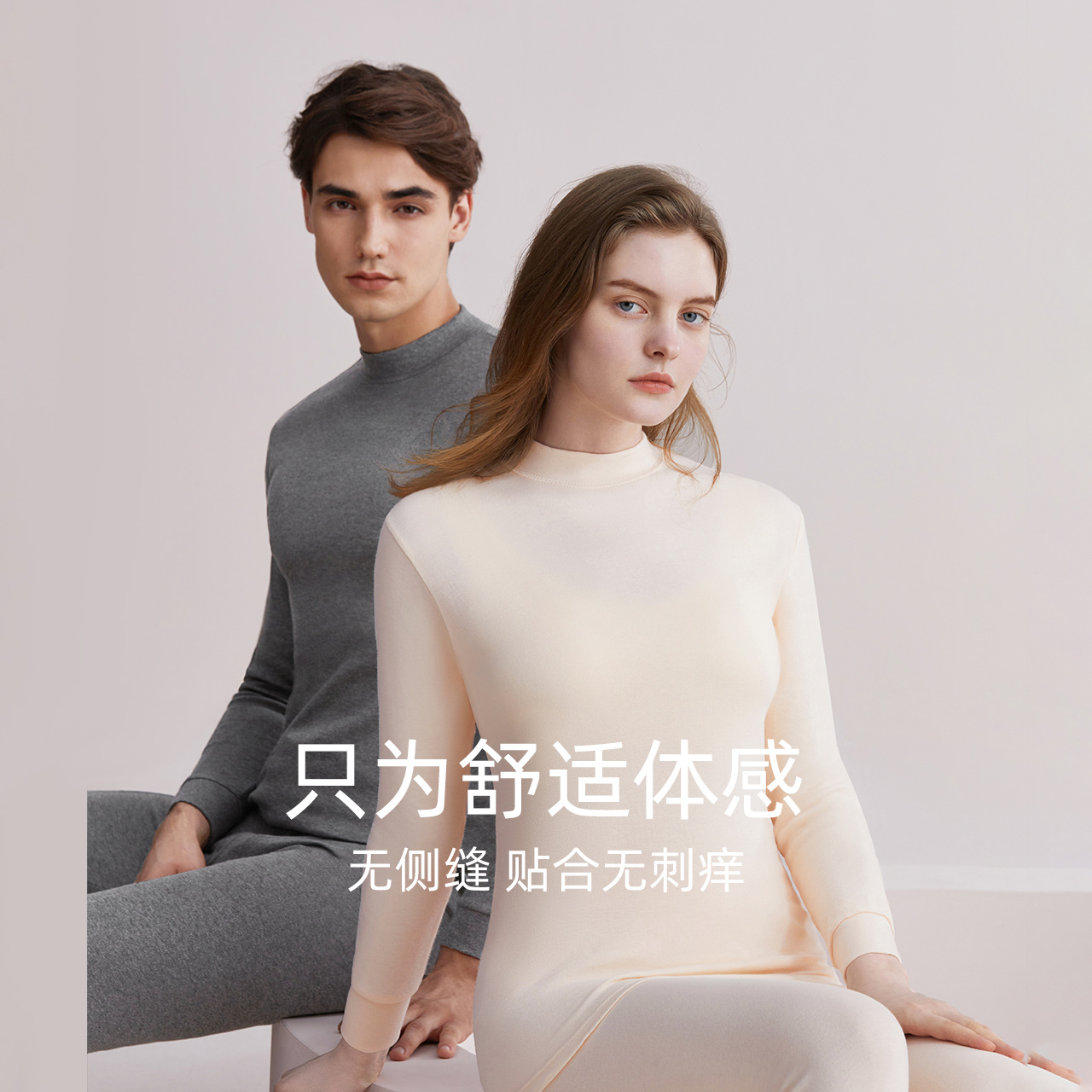 套装 红豆秋衣秋裤 半高领纯棉情侣男女薄保暖内衣全棉中老年棉毛衫