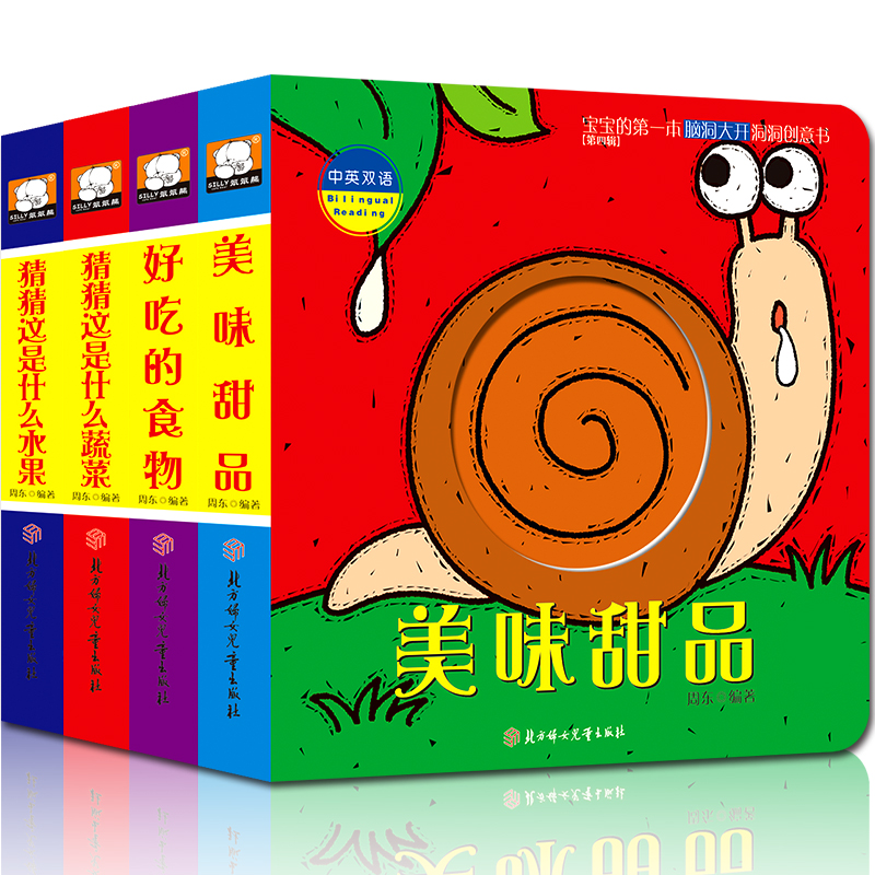 猜猜这是什么洞洞书中英双语全4册0 2岁绘本翻翻书儿童奇妙创意亲子读物蔬菜水果食物甜品识物书籍 3岁撕不烂婴儿早教启蒙认知书1