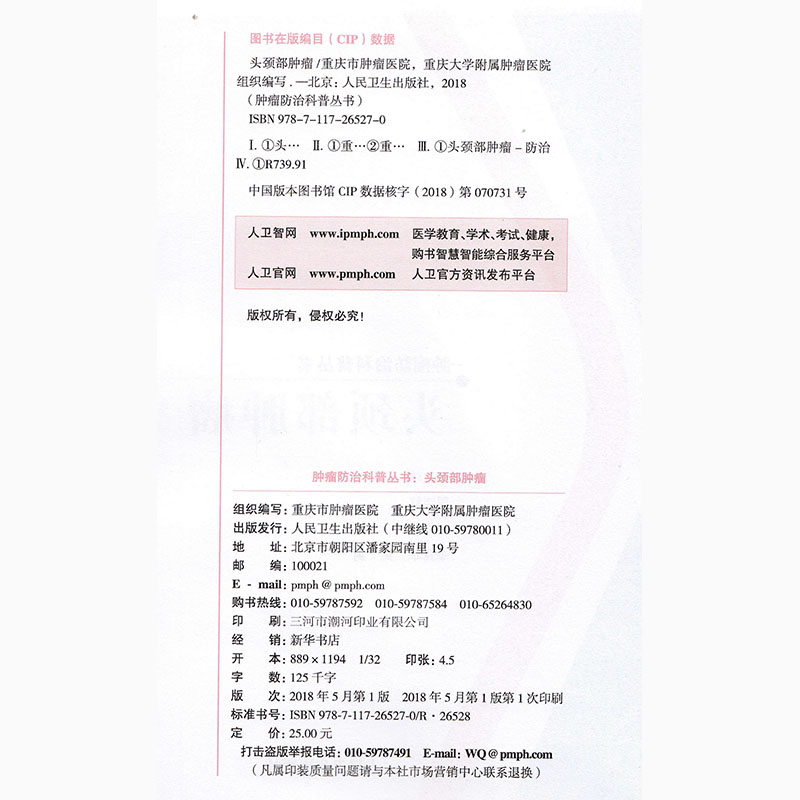 人民卫生出版 肿瘤防治科普丛书:头颈部肿瘤 社 现货 正版