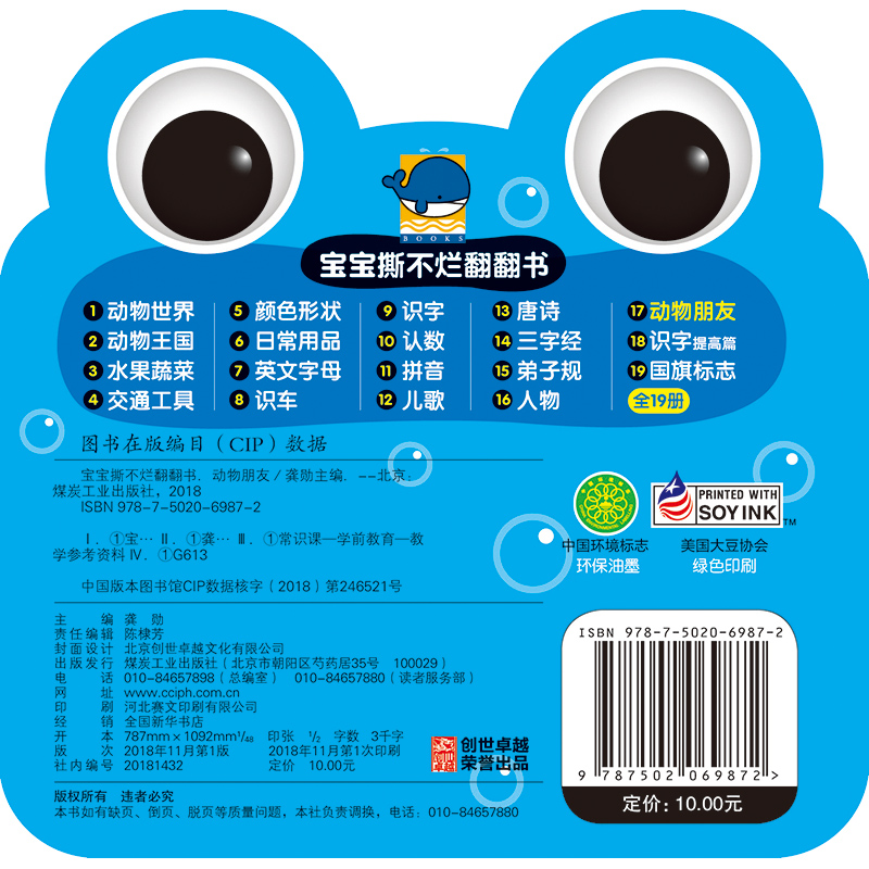 baby宝宝撕不烂翻翻书 动物朋友 常识课学前教育教学参考资料 中英双语教学 包邮 环保油墨绿色印刷 硬卡精美彩印 满15元