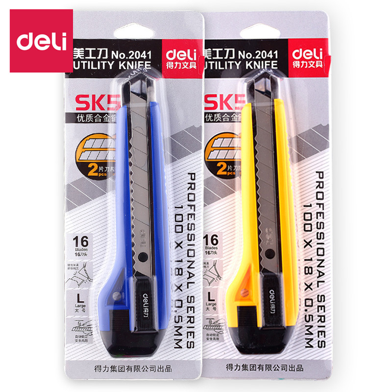 得力2041美工刀大号美工刀18mm得力切纸刀仓库快递刀裁纸刀手工刀工具刀重型多功能介刀墙纸 送刀片 2把装