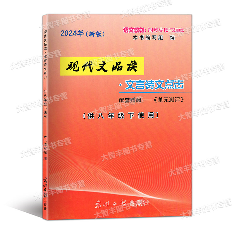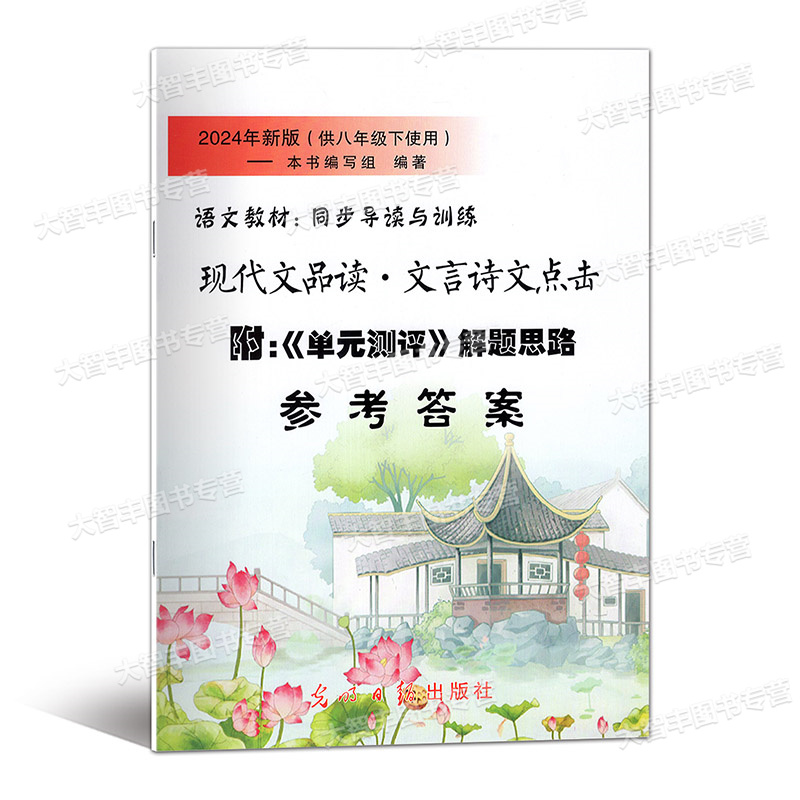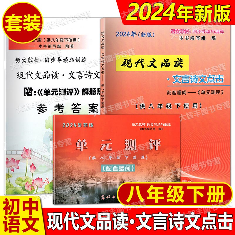 8年级下 社 书 配套附阅单元 测试测评 参考答案 八年级下 试卷 光明日报出版 2024年新版 八年级第二学期 现代文品读文言诗文点击