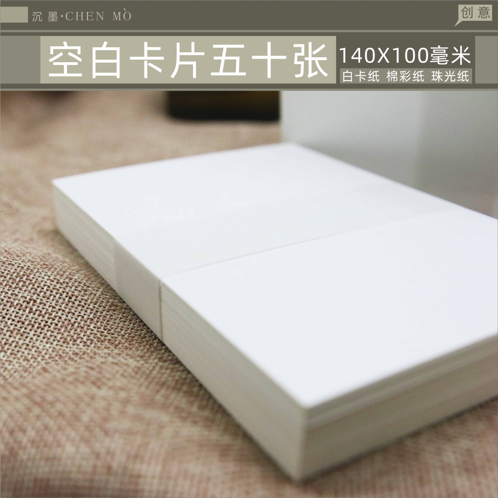 沉墨空白明信片50张个性 diy涂鸦卡片写字卡学习卡联系空白卡绘画卡单词卡记事卡创意素描空白硬纸自制知识卡
