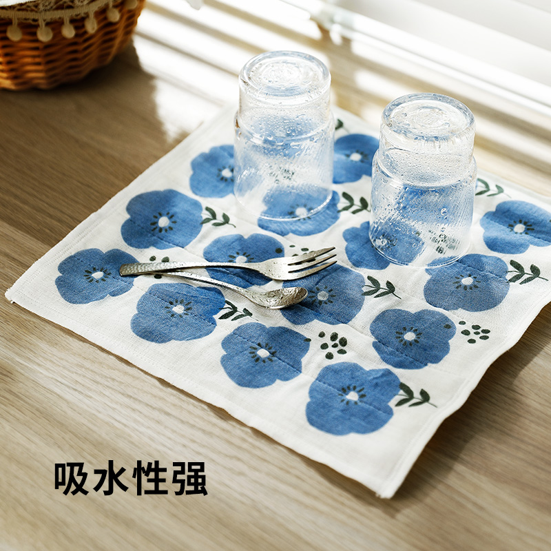 日本进口复古茶布茶巾清新花朵防尘布厨房巾家用吸水百洁布洗碗布