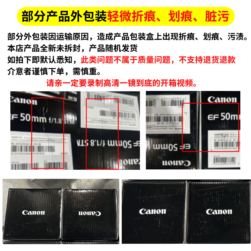 轻微破损海外版 三代小痰盂佳能EF 50mmF1.8STM定焦大光圈镜头包装