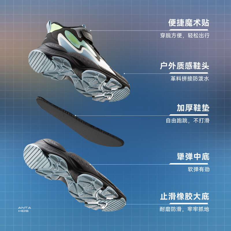 加绒加厚保暖中大童高帮男童运动鞋 新款 冬季 安踏儿童二棉鞋