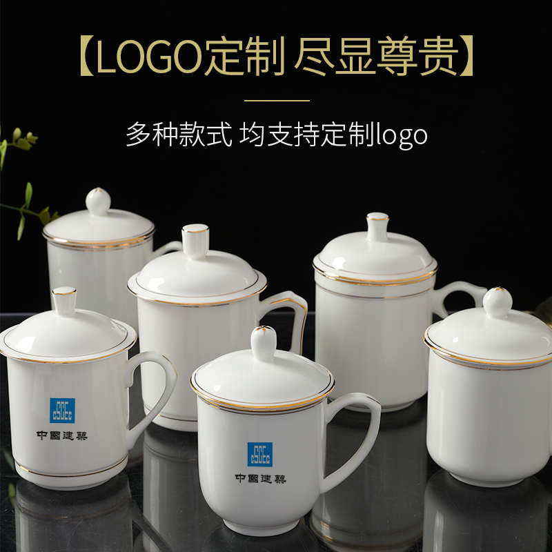 言仓线条小狗泡茶分离杯带滤托陶瓷水杯办公室茶杯生日礼物