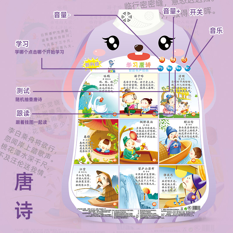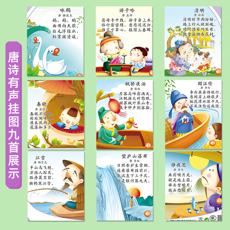 儿童唐诗有声早教挂图宝宝学唐诗三百首古诗诗词发声墙贴幼儿挂墙