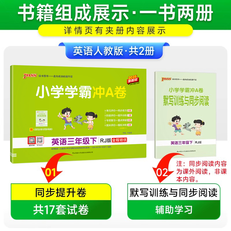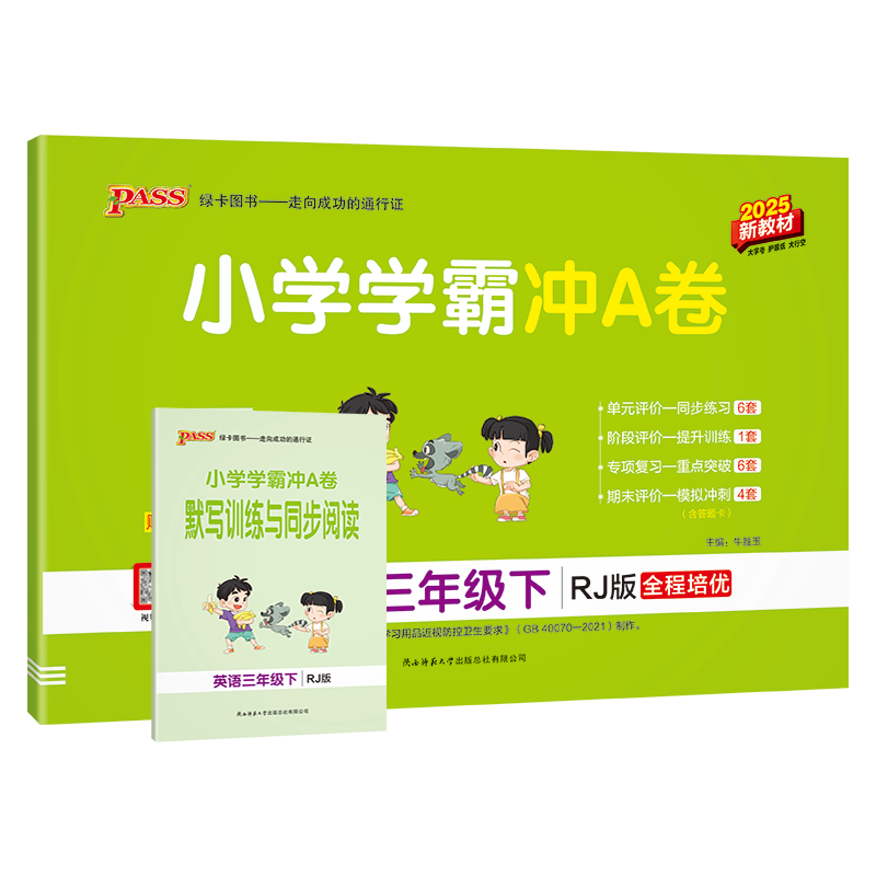 2025春适用pass绿卡小学学霸冲A卷三年级下册英语RJ人教版 卷期中末试卷专项提升三下达标卷答题卡全解读训 同步阅读3年级下同步单元