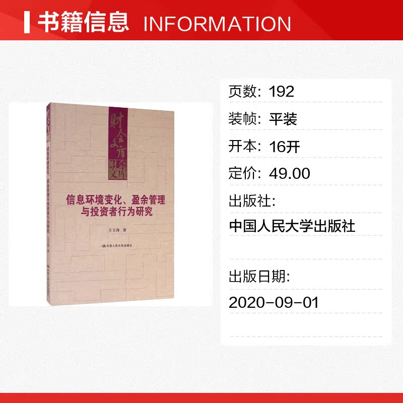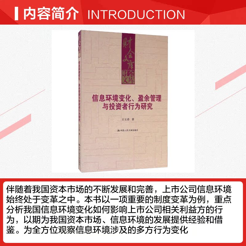 中国人民大学出版 王玉涛 社 正版 新华书店旗舰店文轩官网 信息环境变化 书籍 盈余管理与投资者行为研究
