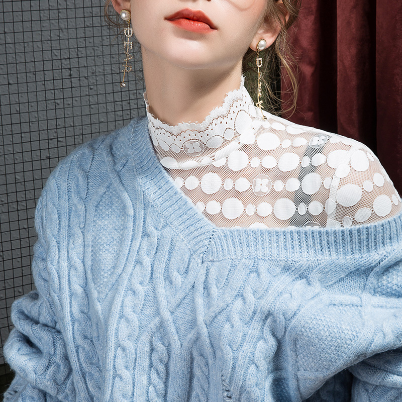 女立领修身 秋季 内搭洋气时尚 2025秋季 小衫 高档蕾丝打底衫 长袖 新款