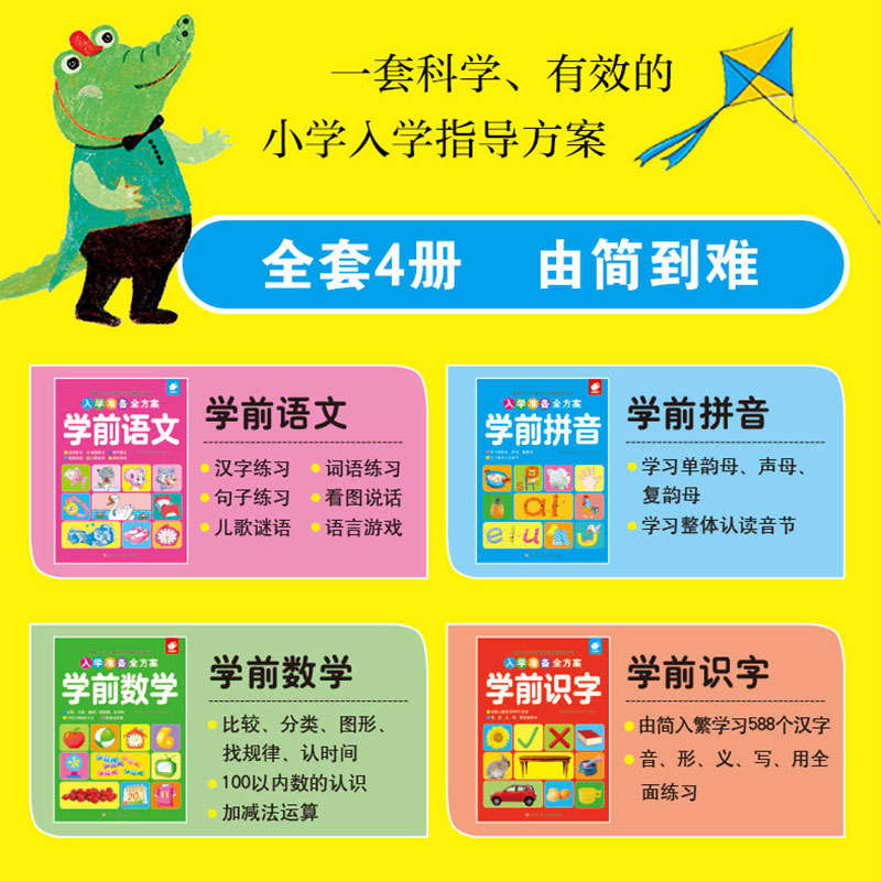6岁幼儿园教材及入学准备学前识字拼音语文数学 儿童3 入学准备全方案 全套4册幼小衔接教材