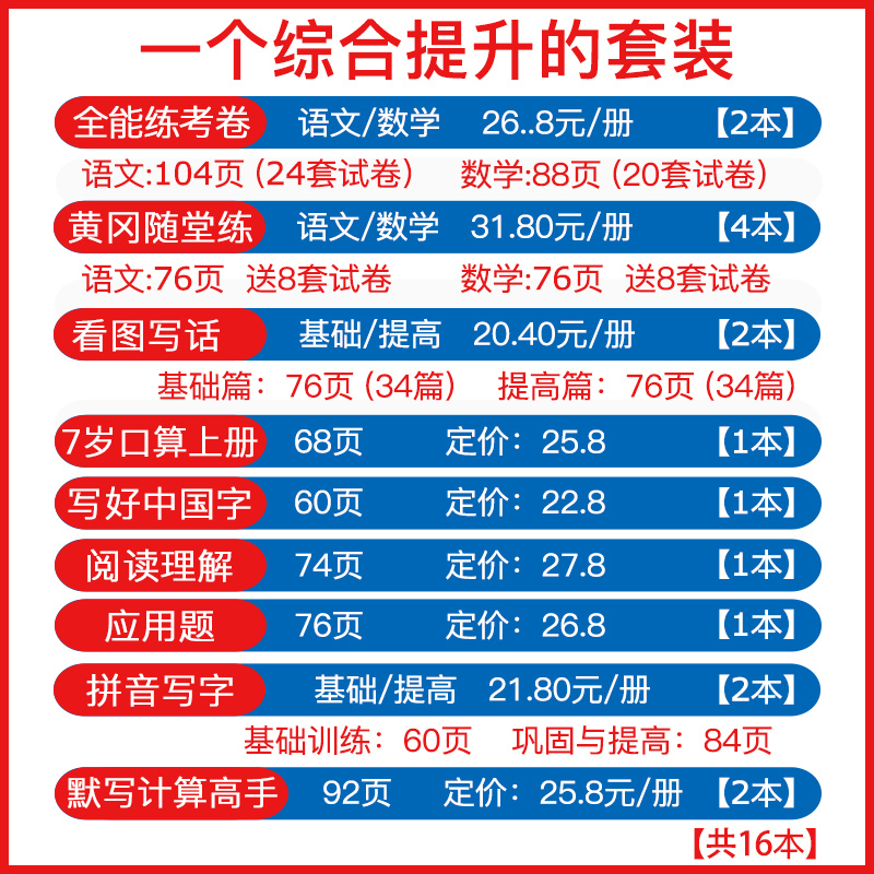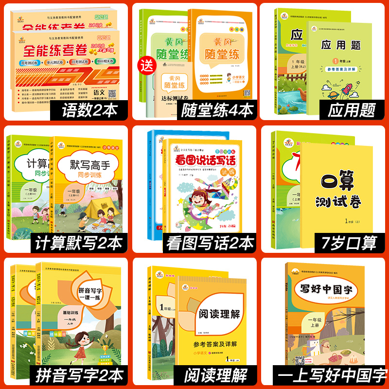 一年级试卷测试卷全套 荣恒 小学语文数学同步练习册1课1练看图写话口算题卡 16本20部编版 一年级上册试卷 一年级上册同步训练全套