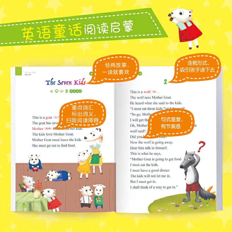 七只小羊 小红帽 双语剧本 英语童话 中文翻译 三种阅读法 小红母鸡四个故事 经典 三只小猪