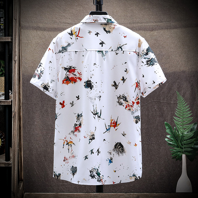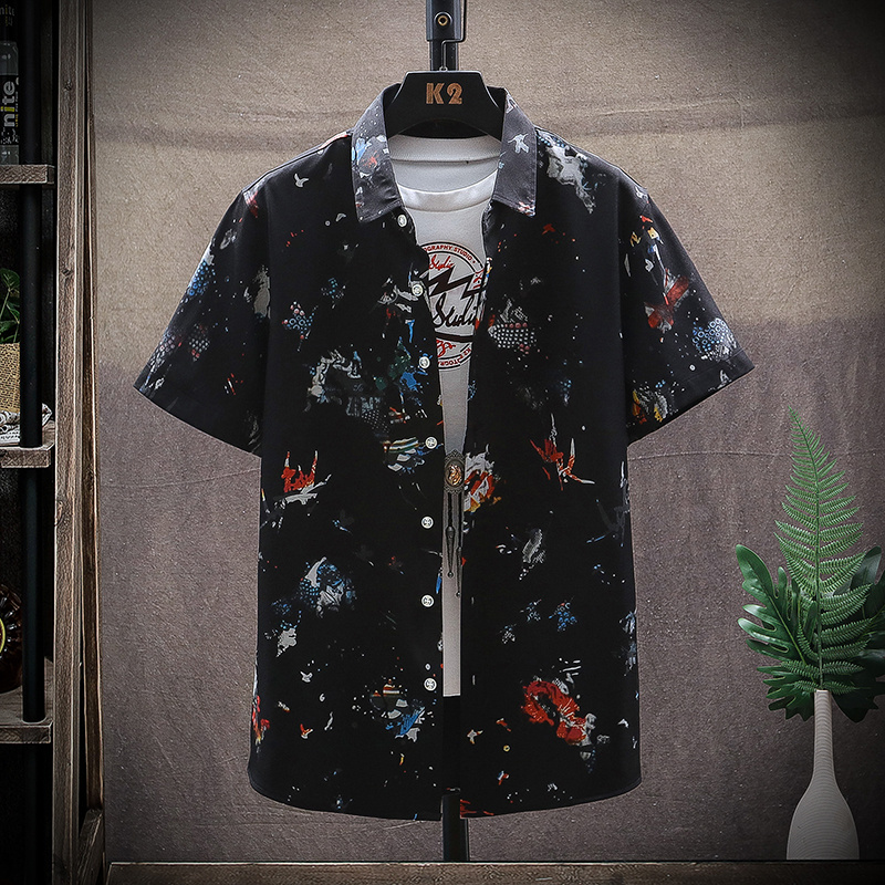 短袖 薄款 印花衬衫 宽松休闲肥佬衬衣加大码 胖子 夏季 社会汗衫 男士
