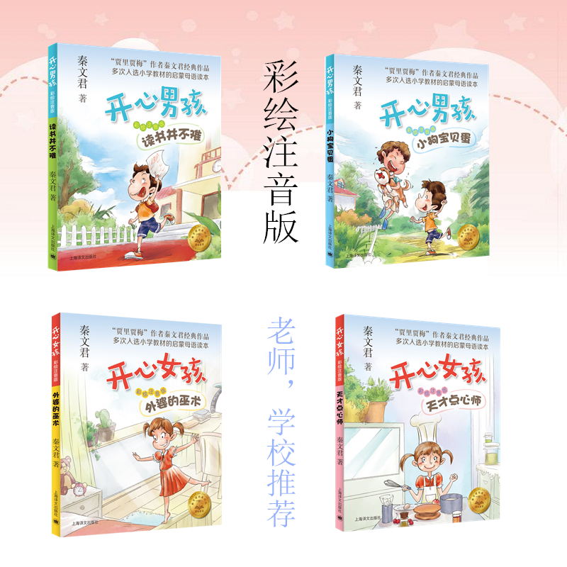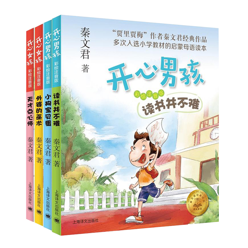 10岁小学生课外阅读书三四五年级语文教材课外阅读书籍校园成长故事小说正版 开学女孩彩绘注音版 开心男孩秦文君全套4册