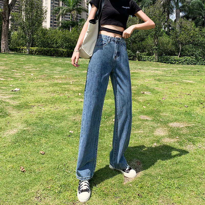 小个子拖地直筒弹力怀旧喇叭裤 高腰马蹄浅色长裤 牛仔女美式 微喇裤