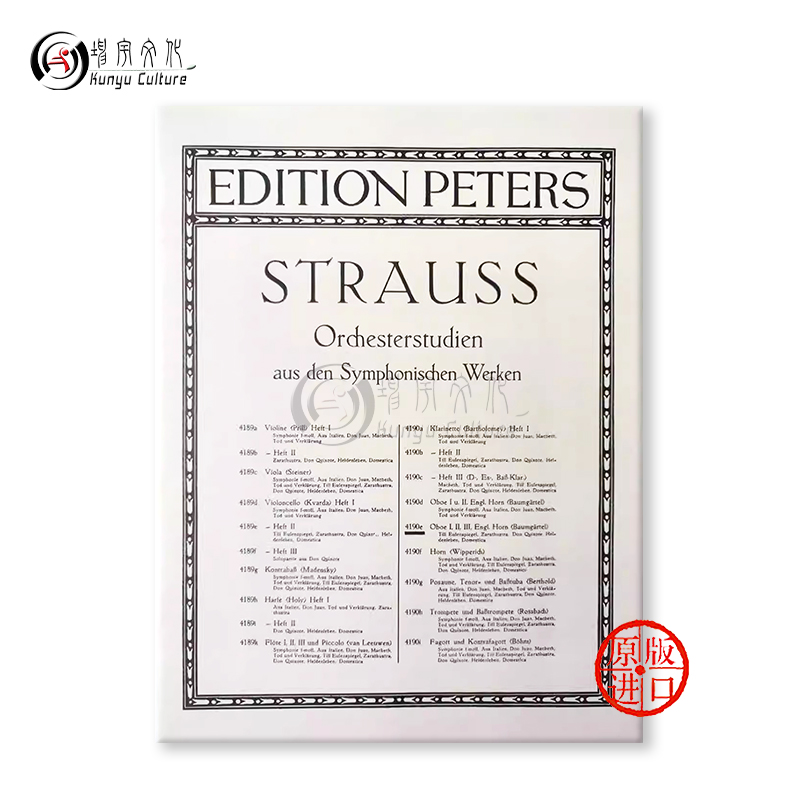 Strauss 管弦乐练习曲 乐谱书 施特劳斯 Orchestral 三支双簧管和英国管 Vol 卷二 EP4190E 彼得斯原版 Studies Richard