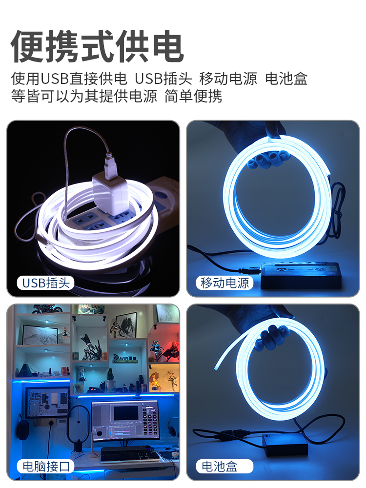 led可充电式 usb柔性霓虹硅胶软灯带条不插电 灯带5v低压灯条电池款