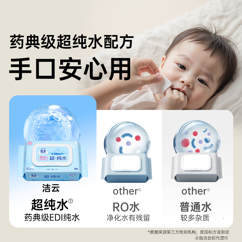 洁云EDI纯水湿巾加大加厚清洁手口可用整箱 下拉详情享优惠
