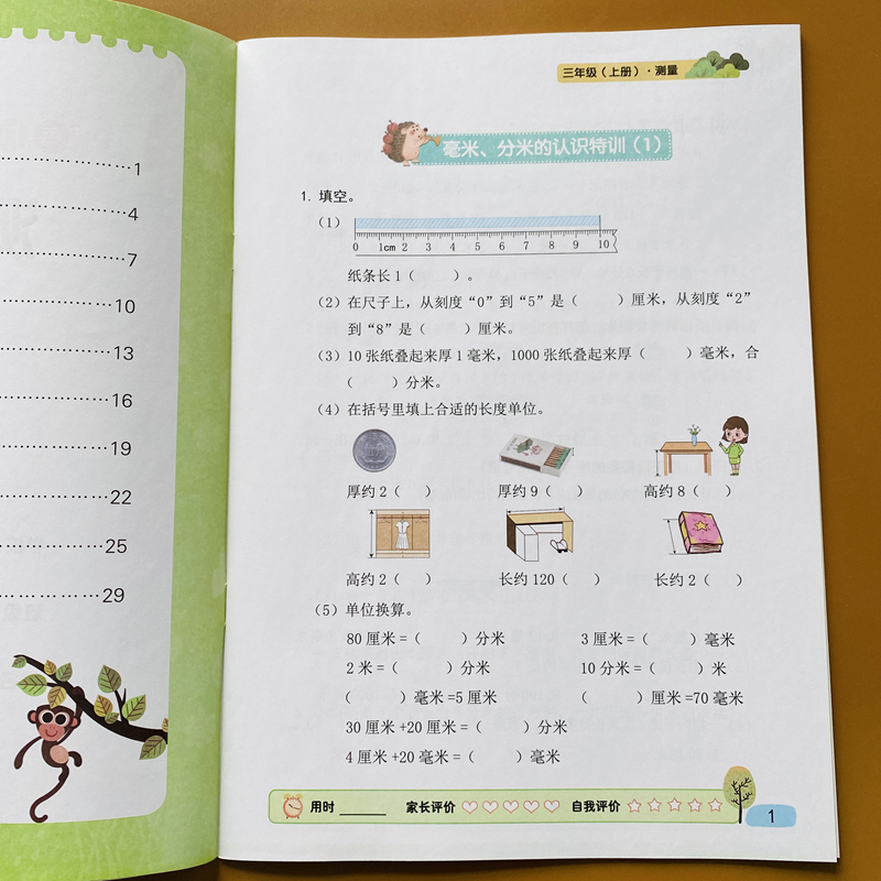 三年级上册数学专项训练人教版 长方形正方形周长计算长度单位米厘米分米毫米练习册测量单位换算克与千克认识时间口算应用题综合