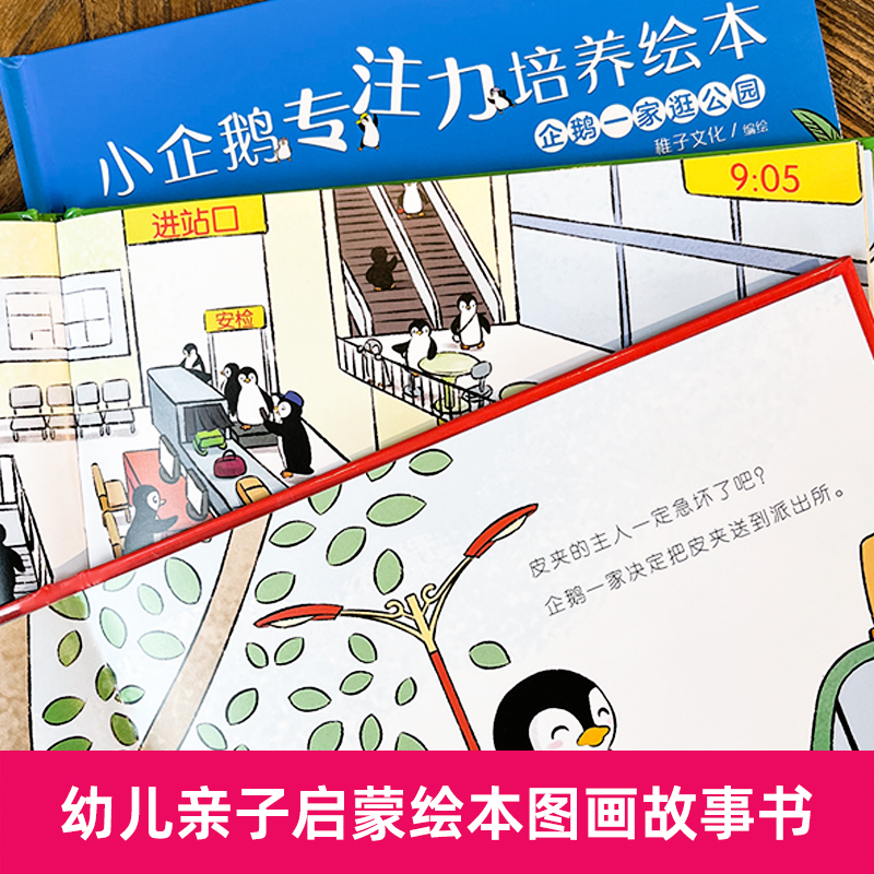 专注力 小企鹅观察力培养绘本全套4册 正版 找不同图画书籍 亲子启蒙绘本图画故事书少儿读物 培养书 6周岁幼