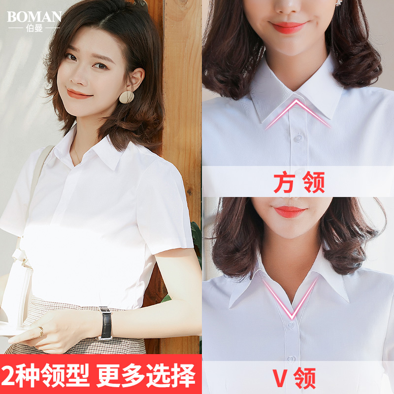 新款 2020职业百搭短袖 衬衣韩版 白色半袖 女装 女夏季 长袖 工作服 衬衫