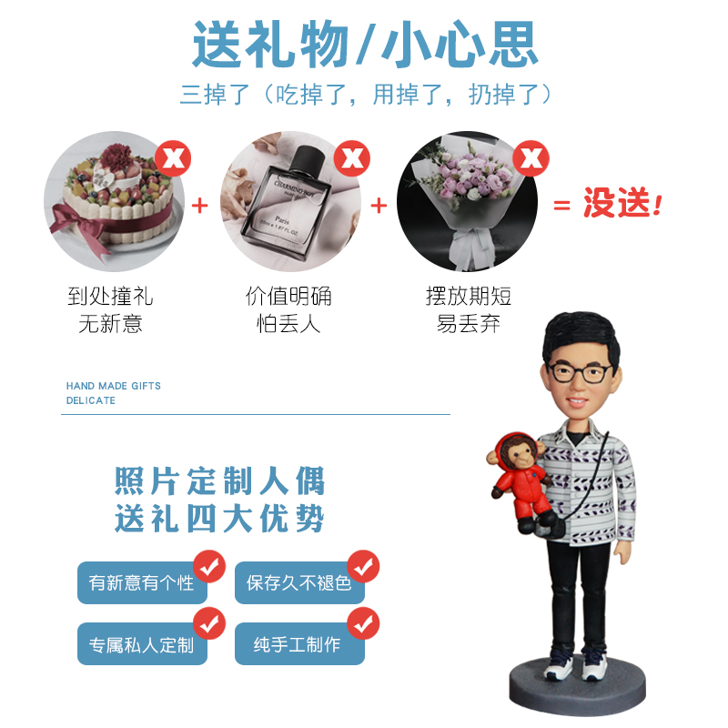 照片定制生日礼物送女友闺蜜泥人真人定制软陶人偶公仔小蜡像雕塑
